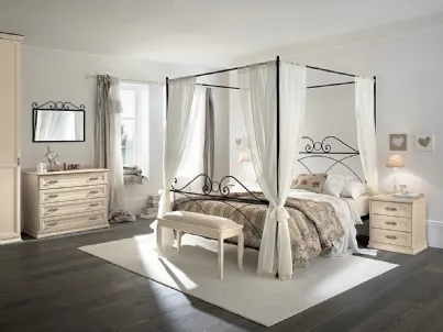 Se vuoi letti matrimoniali con testiera, ecco qui il modello Viola Bianca in legno per completare la zona notte.