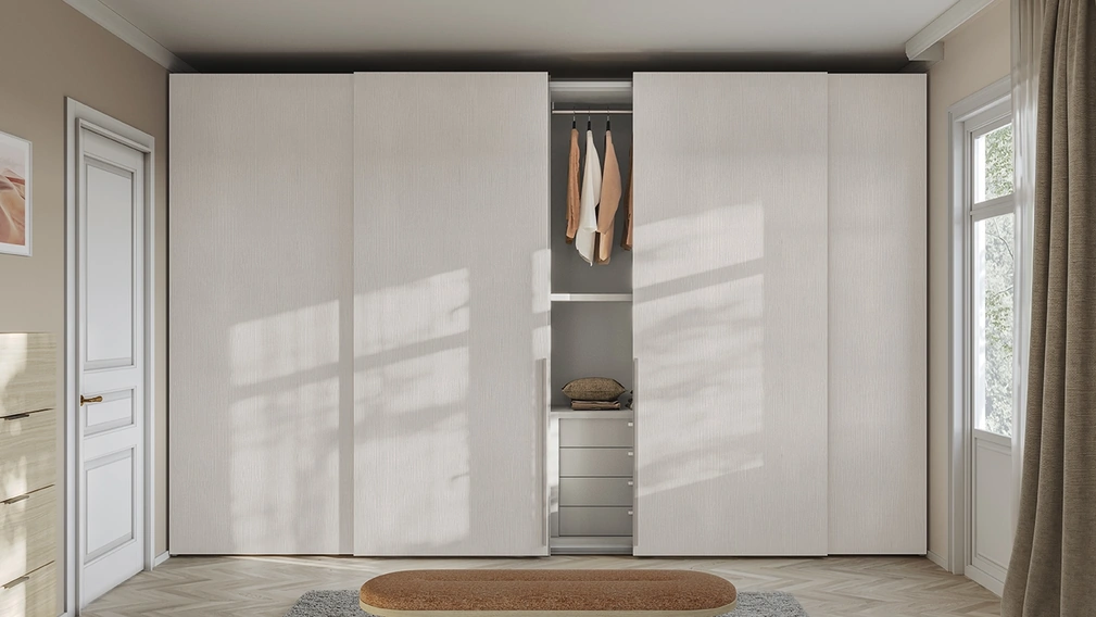 Cerchi un armadio in melaminico? Clicca e scopri armadiature a muro con ante scorrevoli di Colombini Casa.