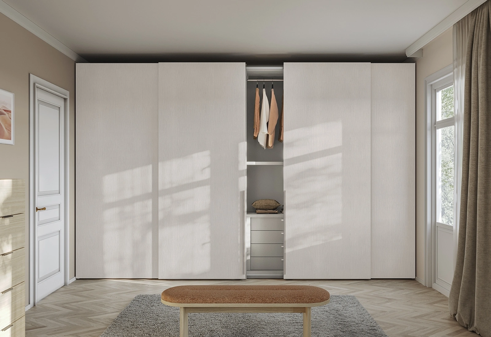 Armadio Concreta W17 Scorrevole di Colombini Casa: compila il form per ricevere informazioni di ogni genere e consigli per allestire la camera che hai sempre voluto. Per allestire perfettamente una stanza pratica e sofisticata, prediligi le più belle soluzioni dei migliori produttori, letti, armadi e comodini di alto contenuto estetico. Contattaci e ottieni informazioni sulla nostra collezione di Living: potrai ultimare la zona notte usufruendo di una ricca varietà di contenitori moderni, come l'armadio in melaminico nella fotografia.