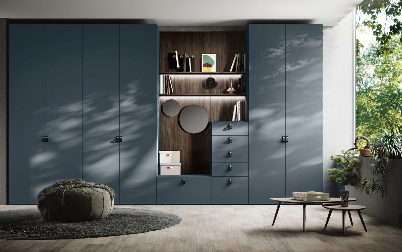 L'armadio Drop di Imab si distingue per una configurazione a tutta parete caratterizzata da ante a libro, ottimizzata per offrire una gestione modulare degli spazi interni. La struttura permette l'integrazione personalizzata di ripiani e vani contenitori, garantendo un'organizzazione funzionale e una continuit estetica rigorosa. Le componenti tecniche sono progettate per massimizzare la capienza volumetrica, consentendo un'installazione versatile adattabile a diverse esigenze dimensionali. Per approfondimenti sui componenti strutturali e le specifiche costruttive, il nostro staff tecnico rimane a disposizione per ogni chiarimento sui materiali impiegati.