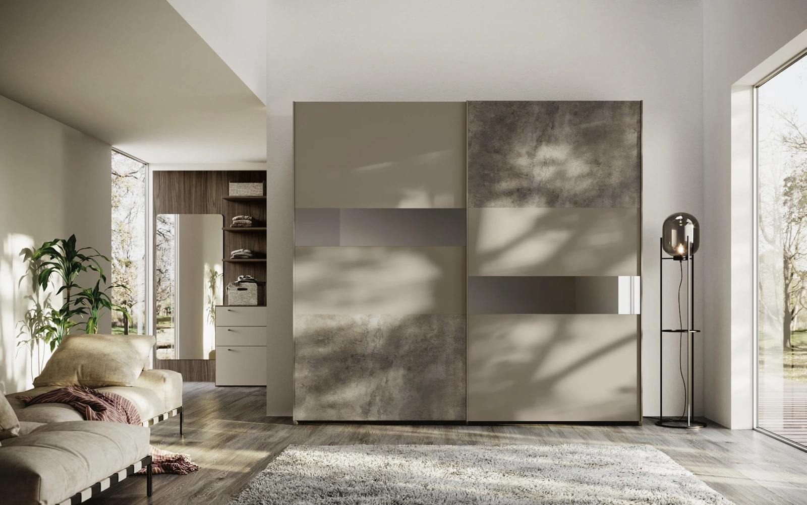 Se desideri armadiature a muro con ante scorrevoli, clicca e scopri l'armadio Twist di Imab in melaminico.
