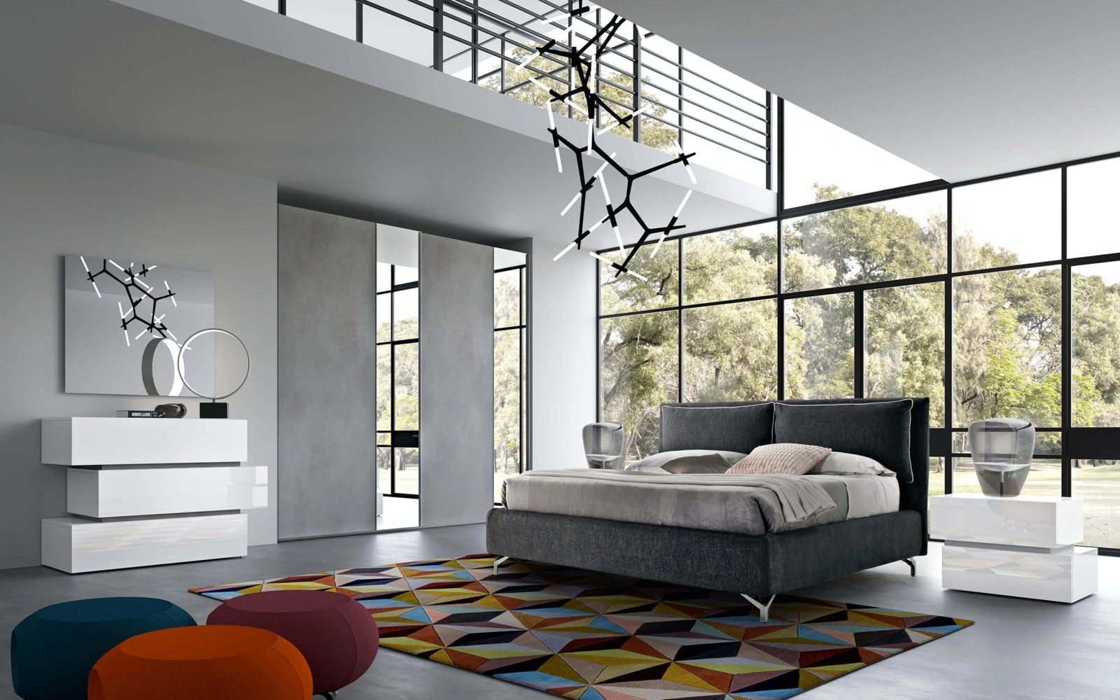 Vuoi ammobiliare la zona notte con Gruppi Letto e cassettiere di Cecchini Italia? Ecco qui il modello Bon Bon Evo 101 Gruppo Notte in laccato lucido per spazi moderni.