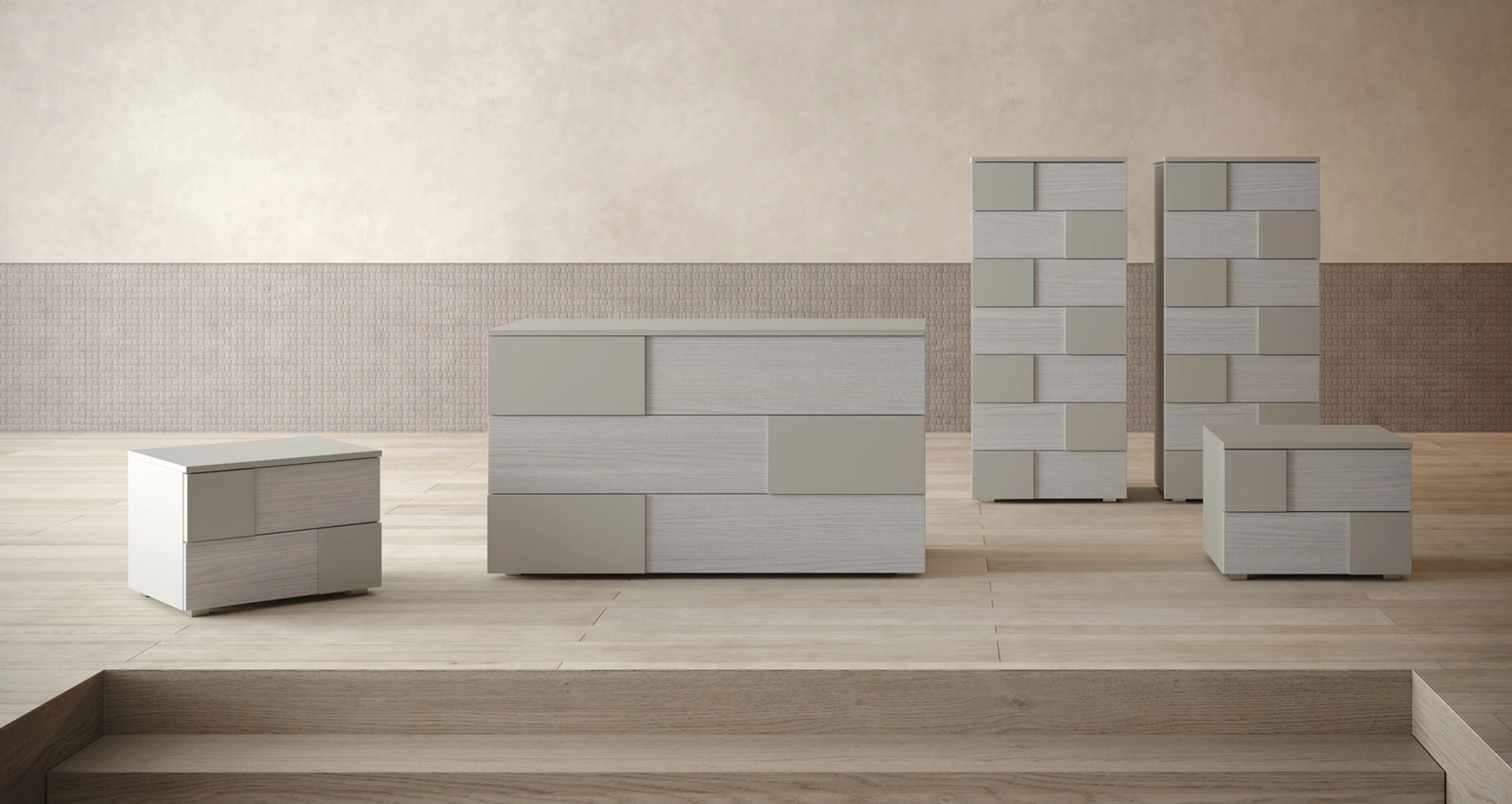 Un ricco catalogo di mobili con cassetti Giessegi: i comodini moderni in melaminico, come Boston Gruppo Notte, sono tra le soluzioni più esclusive.