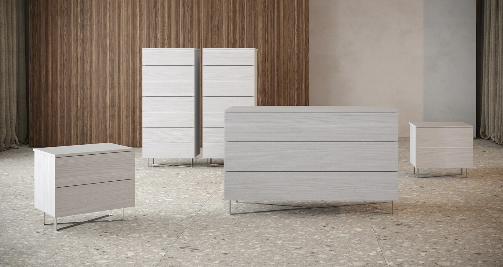 Una ricca gamma di mobili con cassetti Giessegi: i comodini moderni in melaminico, come Cairo Gruppo Notte, sono tra le proposte più esclusive.