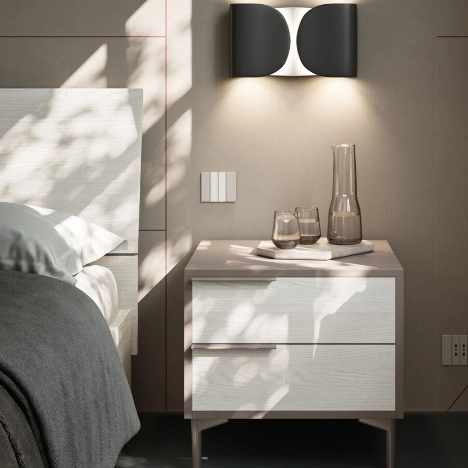 I Gruppi Letto sono mobili e complementi in grado di ultimare la camera fornendo un'area di appoggio certamente utile e versatile. Materiali di prima scelta e ottima fattura per il Gruppo Notte Fasto di Orme in in melaminico, disponibile in showroom insieme alle altre varie offerte del marchio, per fare della zona del riposo un progetto di arredo che ricalchi i tuoi gusti.
