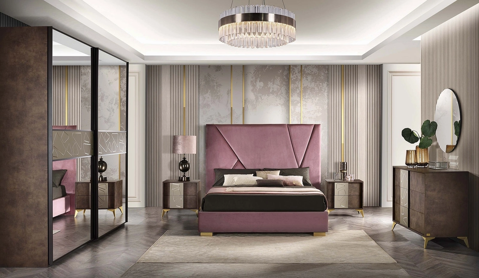 Il Gruppo Notte Grazia rivestito in pelle di Mobil Più è una delle più belle soluzioni capaci di aggiungere un tocco di stile aggiuntivo alla zona notte, grazie a materiali di pregio. Ottimizza i tuoi locali assicurandoti grande funzionalità, spazio contenitivo e un design unico!. In showroom ti sta aspettando una ricca gamma di mobili e complementi design del noto e conosciuto marchio, leader nella produzione di Living per la camera da letto.