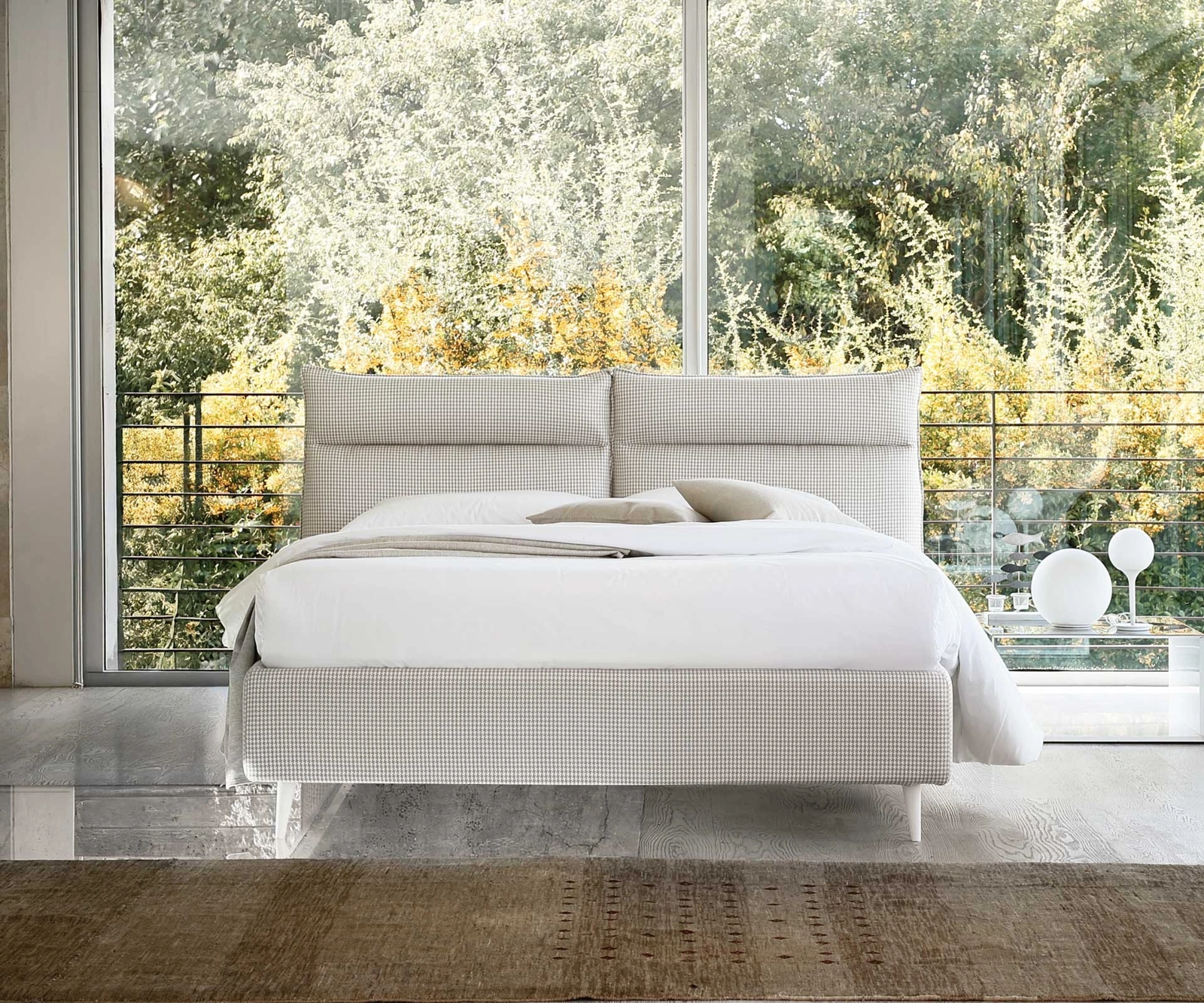 Il letto Cefalù in tessuto, tra i modelli con contenitore matrimoniali moderni di Noctis, è pensato per assicurarti il relax totale.
