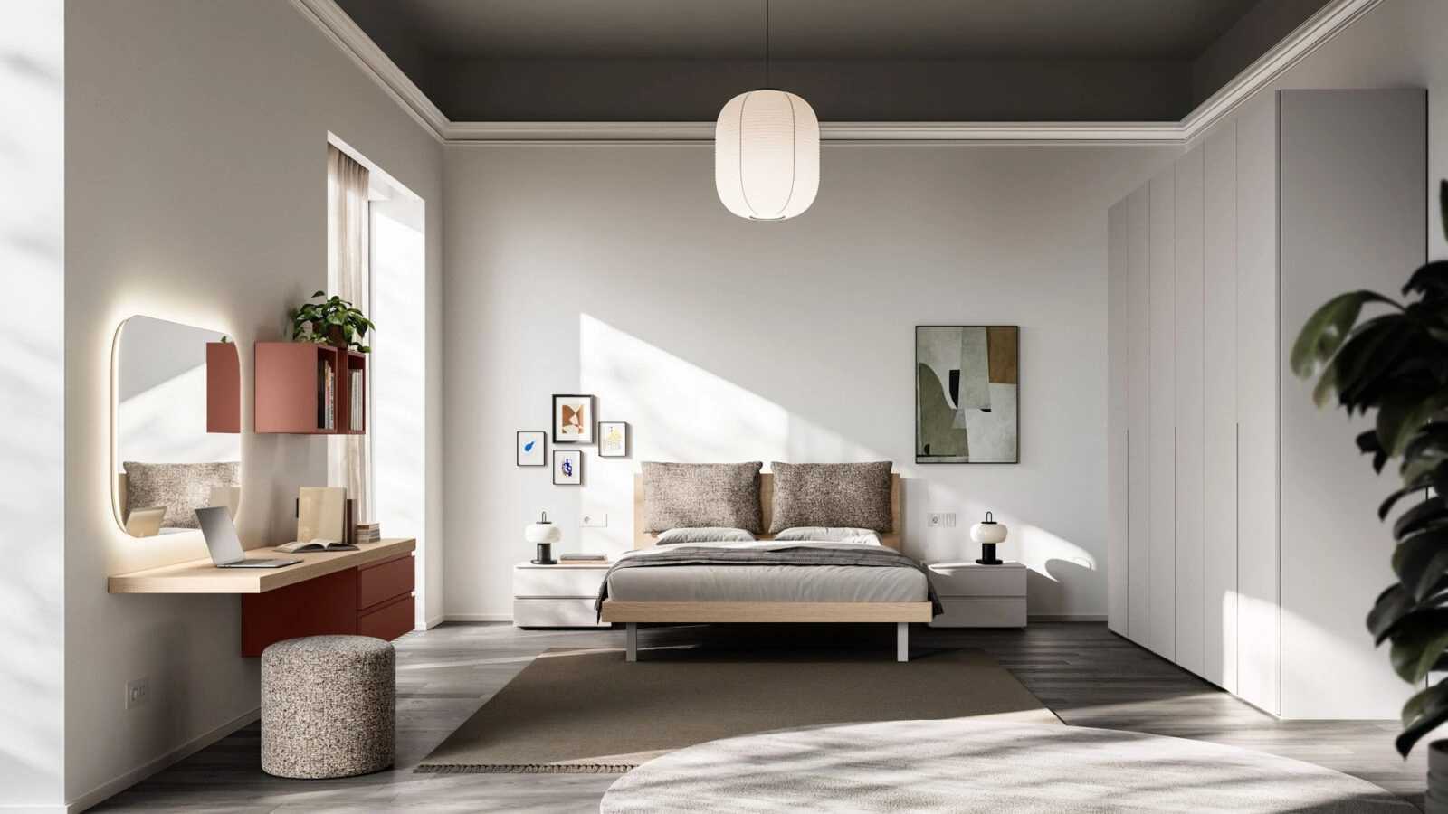 Scegli cromie e finiture e realizza il tuo concept d’arredo nella camera da letto, progettandola proprio come l'avevi immaginata. Durante la scelta di un buon modello di letto, valuta con attenzione le sue misure, le finiture, la forma e il suo stile rispetto al resto dell'arredo. Se vuoi una soluzione in melaminico, il modello mostrato in foto è connotato da materiali pregiati e linee decise, che invitano a trascorrere un riposo profondo e ristoratore. Il Letto Cremi Night 01 di Orme crea uno spazio intimo e confortevole in ogni camera da letto, garantendoti il sonno più profondo e uno stile unico.