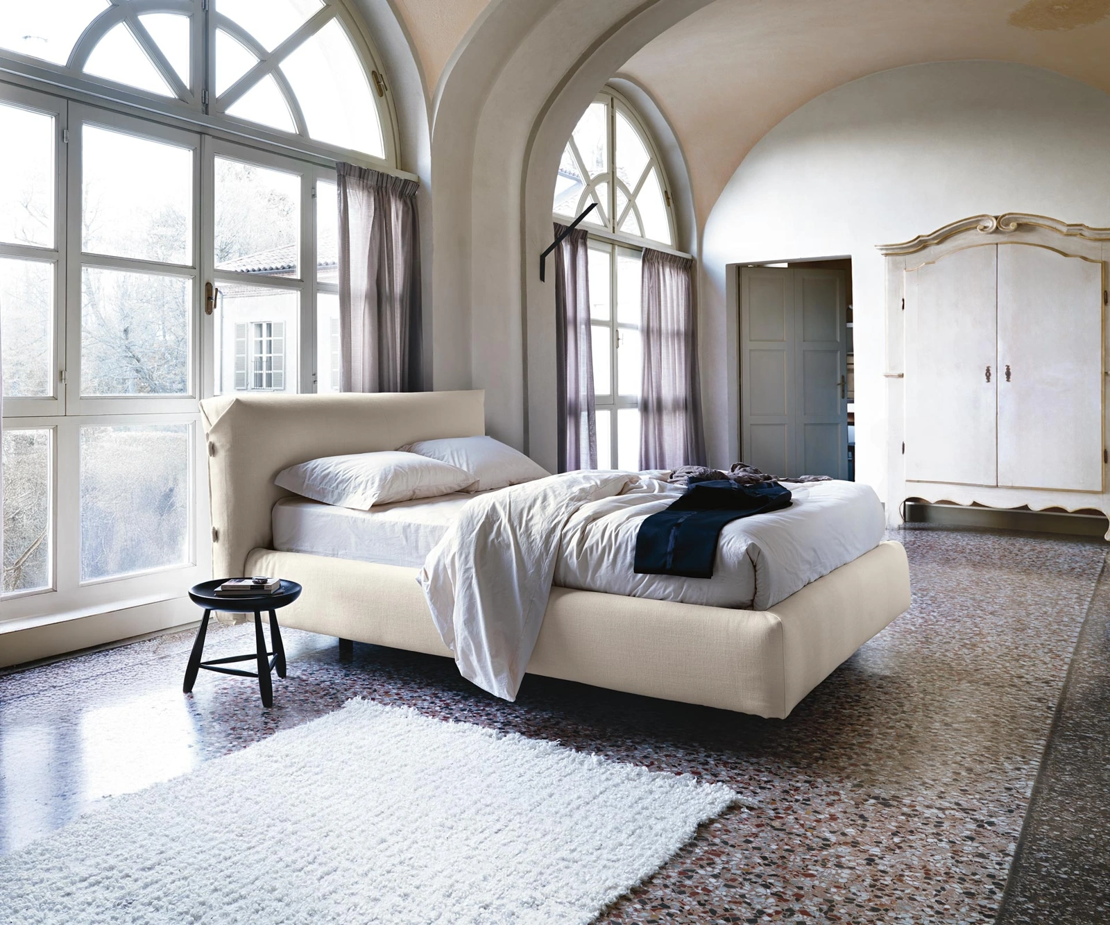 Il letto Allan in tessuto, tra i modelli imbottiti matrimoniali moderni di Noctis, è perfetto per assicurarti il sonno più profondo.