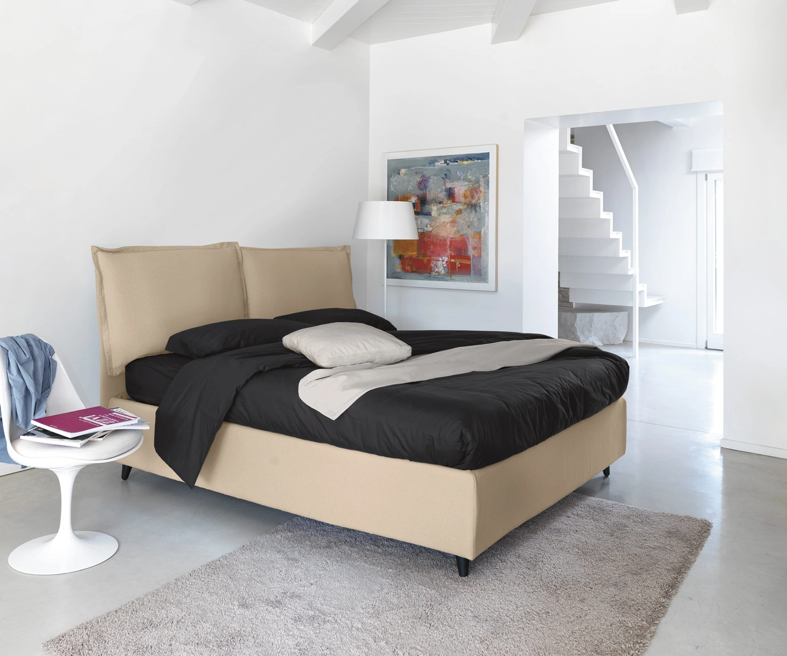 Scegli tonalità e finiture e realizza il tuo concept d’arredo nella zona notte, progettandola proprio come l'avevi sognata. Il Letto imbottito Vera di Noctis crea uno spazio accogliente e confortevole in ogni zona notte, assicurandoti il relax totale e un design unico. I Letti matrimoniali con contenitore del brand, specialista nella realizzazione di Living per la zona notte, sono progettati per essere abbinati a mobili ed elementi accessori di ogni tipo, come armadi e comò, abat jour e piantane. Se desideri una soluzione in tessuto, il modello visibile in foto è caratterizzato da materiali pregiati e forme decise, che invitano a passare un riposo profondo e ristoratore.