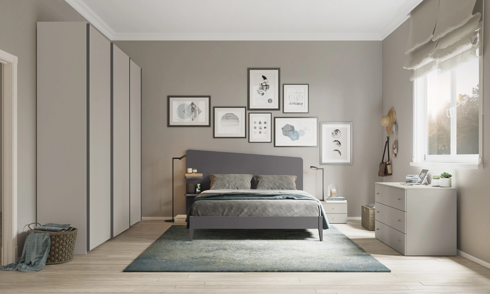 Il letto Volo Edge Plus in melaminico, tra i modelli con testiera matrimoniali moderni di Colombini Casa, è pensato per garantirti il relax totale.