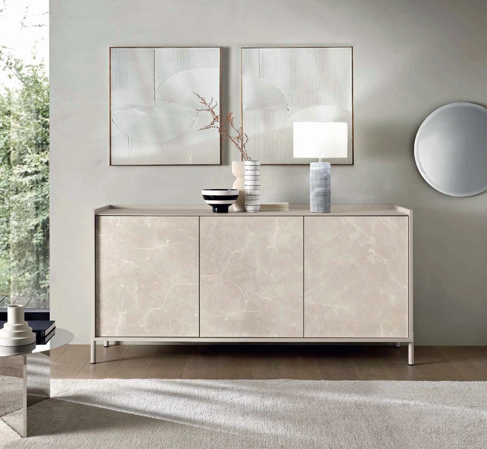 La madia Sound 04 di Gierre Mobili è progettata con un piano d'appoggio resistente e offre diverse opzioni per ante e divisori interni. È ideale per organizzare i tuoi spazi con stile e funzionalità.