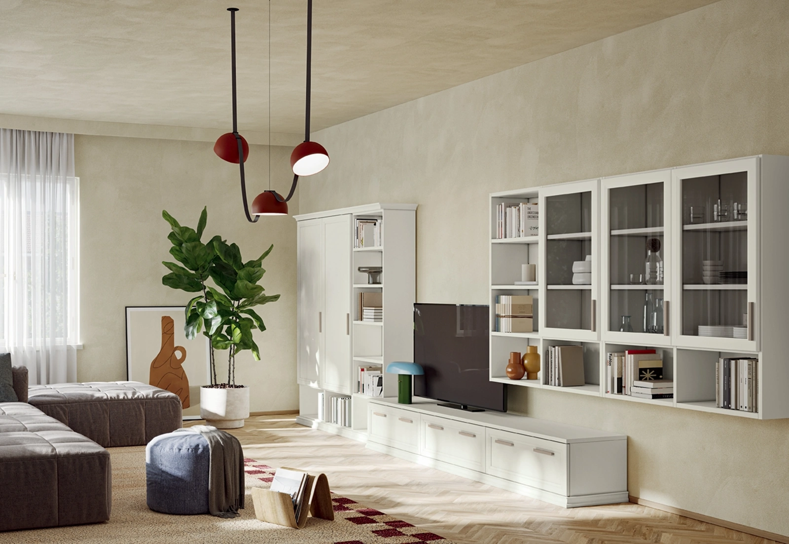 Pareti attrezzate e pensili Colombini Casa: clicca e scopri il modello Arcadia AS003 e potrai arricchire stanze classiche di ogni genere.