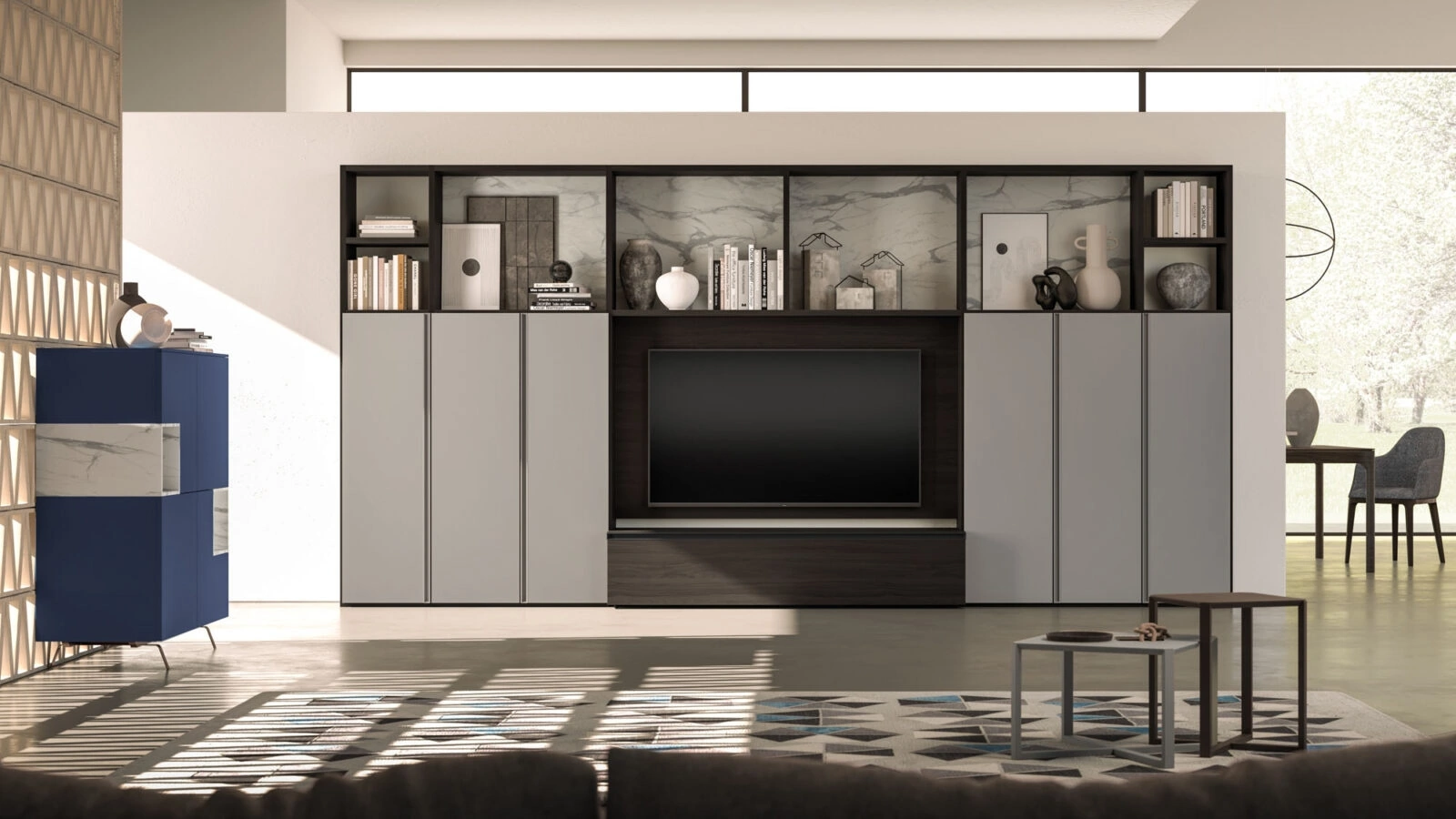 Vuoi allestire un living pratico e dinamico? Ecco a te la parete attrezzata Logico Day 27 Orme dalle forme decise moderne.