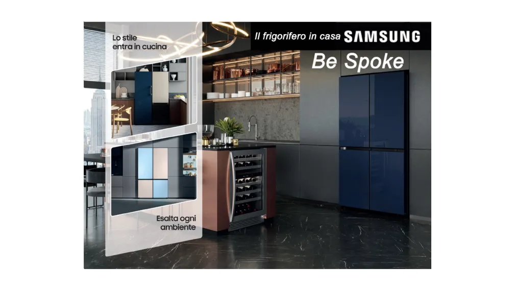 Samsung presenta BESPOKE, il frigorifero di design, modulare e personalizzabile. Ricercate finiture come il vetro classico, lucido o satinato vengono declinate in un’ampia gamma di colori per adattarsi al tuo gusto e allo stile della tua casa. Diversi modelli con larghezze e capacità differenti permettono di creare la combinazione più adatta ad ogni esigenza e allo spazio a disposizione. Lasciati sedurre dalla tua combinazione preferita!