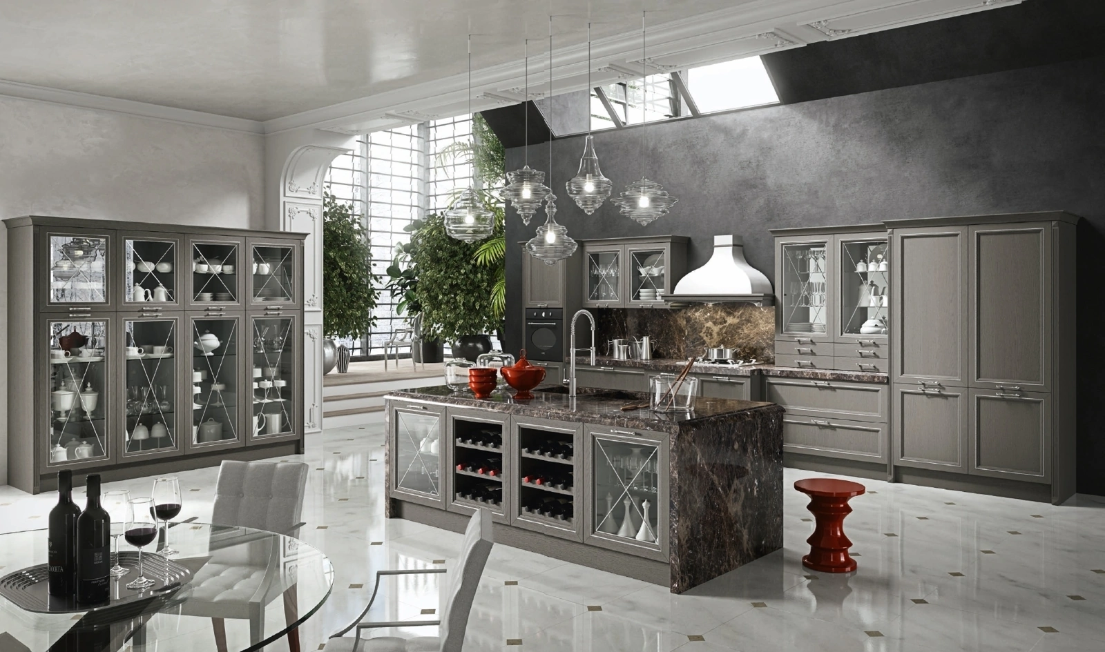 Cucine con isola Aran: entra e scopri un mondo di design e contenuto estetico! La cucina classica Magistra Frassino Titanio ti aspetta.