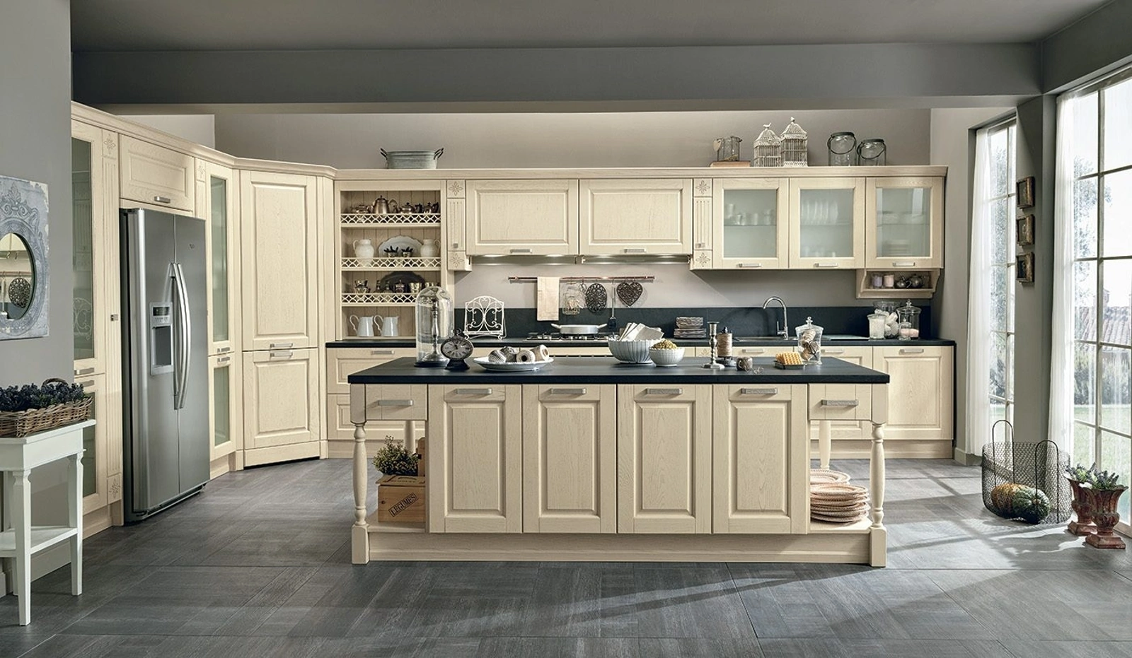 Vuoi riammodernare la vecchia cucina? Clicca e scopri una ricca gamma di soluzioni classiche con isola: Opera 02 ti sta aspettando!