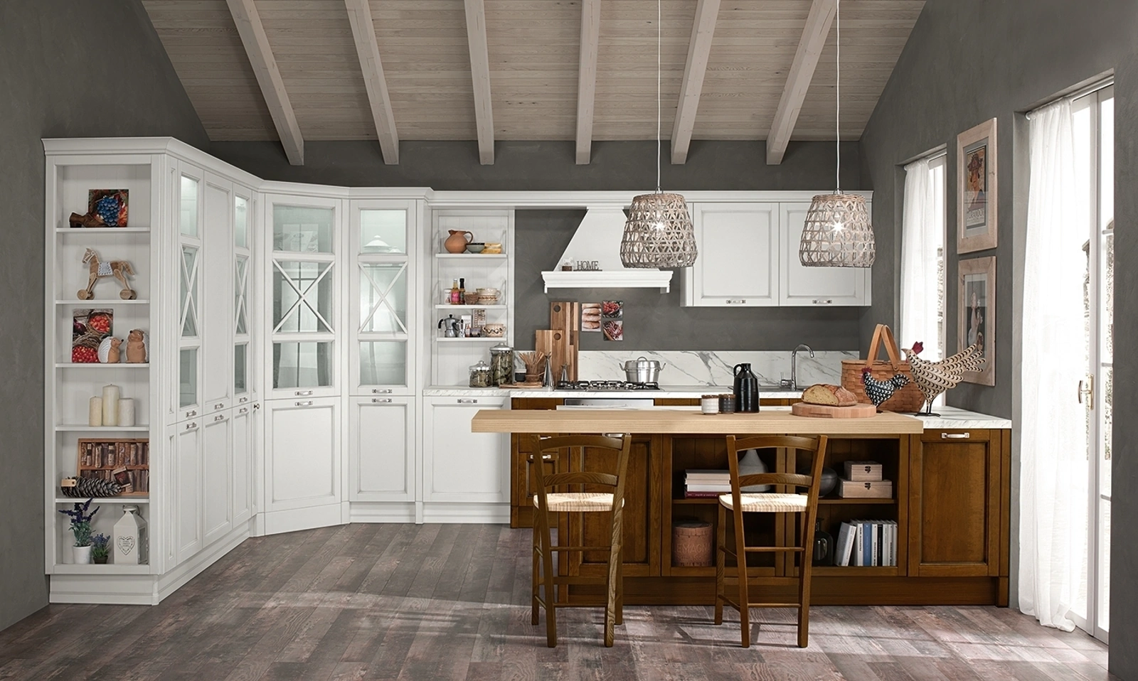Tempo di attualizzare la cucina? Opta per il modello Sinfonia 03 Colombini Kitchen tra le nostre Cucine Classiche con penisola.
