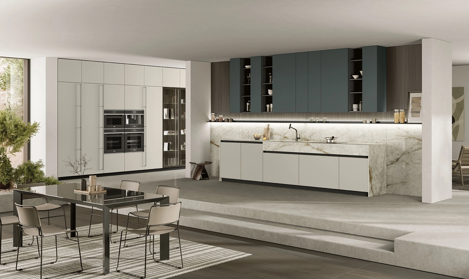 Questa proposta ti sorprenderà grazie alla gamma quasi infinita di finiture e elementi accessori sempre disponibili visitando il nostro showroom. Se desideri una composizione in Pet, ti suggeriamo il modello visibile in foto: materiali di prima scelta e finiture di tendenza sono garantiti. Con la Cucina Moderna ad angolo Lungomare 01 di Colombini Kitchen potrai organizzare gli spazi impreziosendoli, mixando in modo ottimale peculiari doti di praticità e design unico.