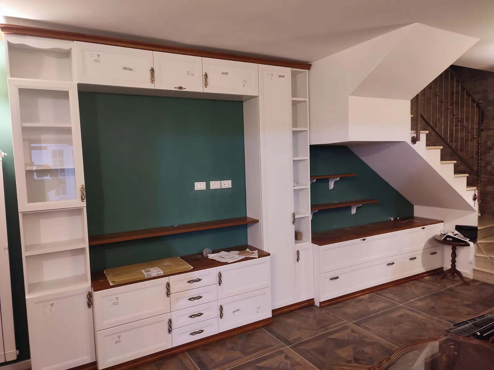 Realizzare una parete attrezzata a Genzano di Roma ha rappresentato una sfida progettuale stimolante: trasformare un sottoscala asimmetrico in un elemento d'arredo funzionale e armonioso. Il progetto si distingue per la capacità di assecondare le linee discendenti del soffitto, integrando una colonna portante centrale che è stata letteralmente "inglobata" nella struttura per renderla invisibile. L’utilizzo di ante in legno massello intelaiate garantisce solidità e pregio estetico, creando un continuum visivo tra la zona living e l'area cucina.