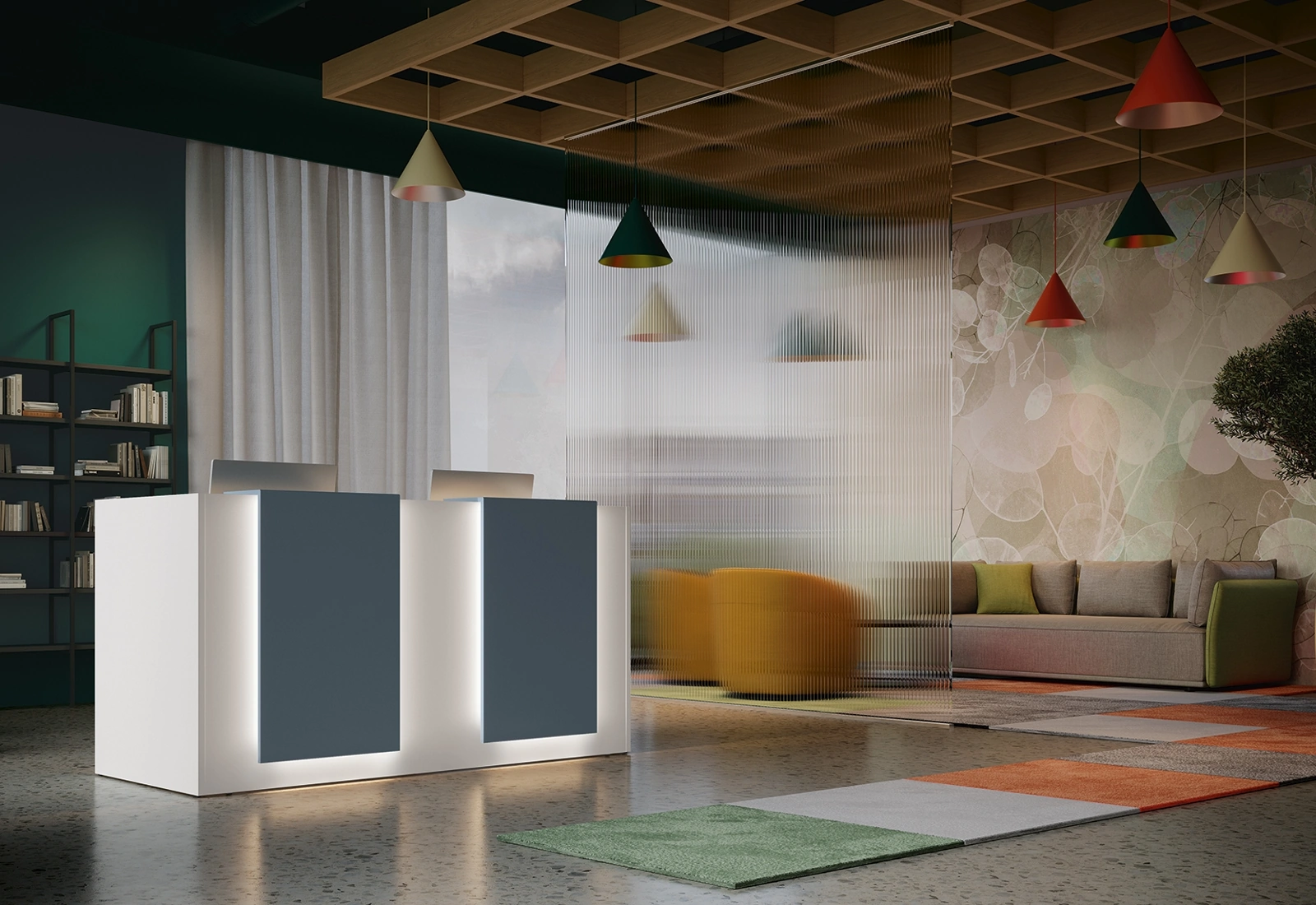 Vuoi arredare uffici operativi e direzionali? Eccoti varie proposte di banconi reception in melaminico, come il modello Reception Color 04 di Colombini Office.