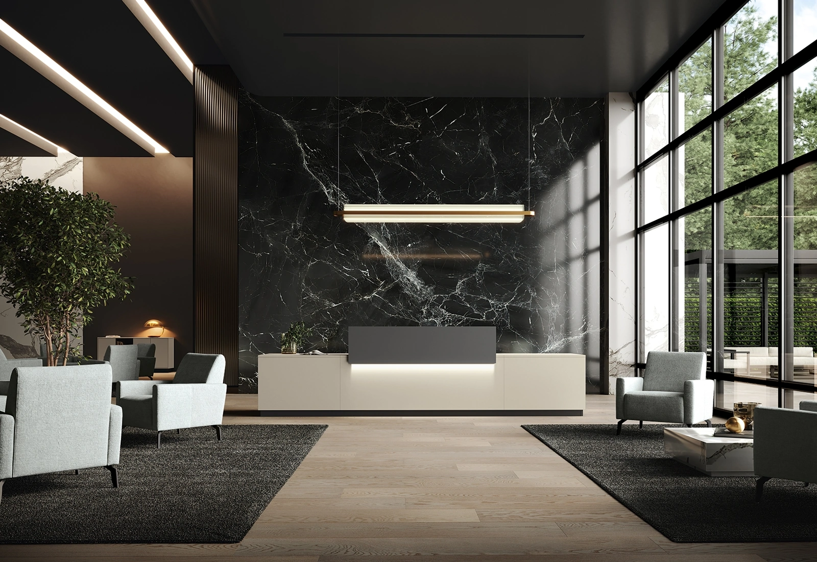 Cerchi Arredo Ufficio delle migliori marche? Scopri le differenti soluzioni di banconi reception in melaminico, come il modello Reception Class 01 di Colombini Office.
