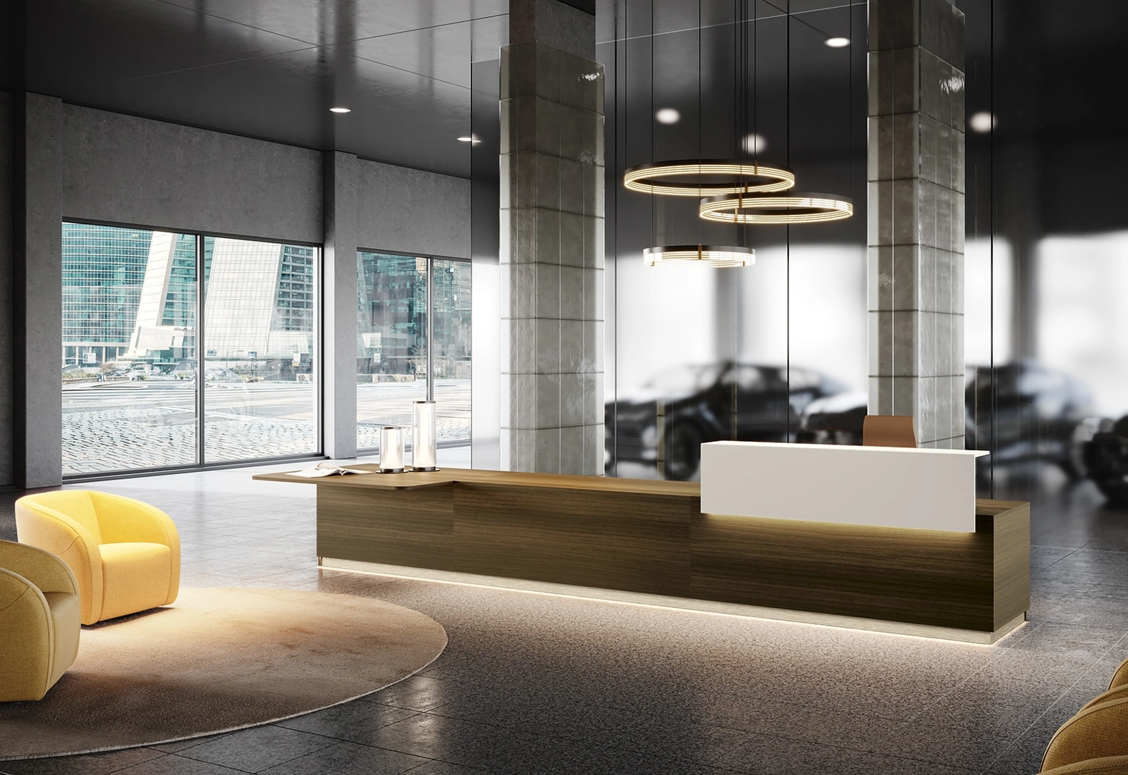 Cerchi Arredo Ufficio dei migliori produttori? Scopri le diverse proposte di banconi reception in melaminico, come il modello Reception Class 04 di Colombini Office.