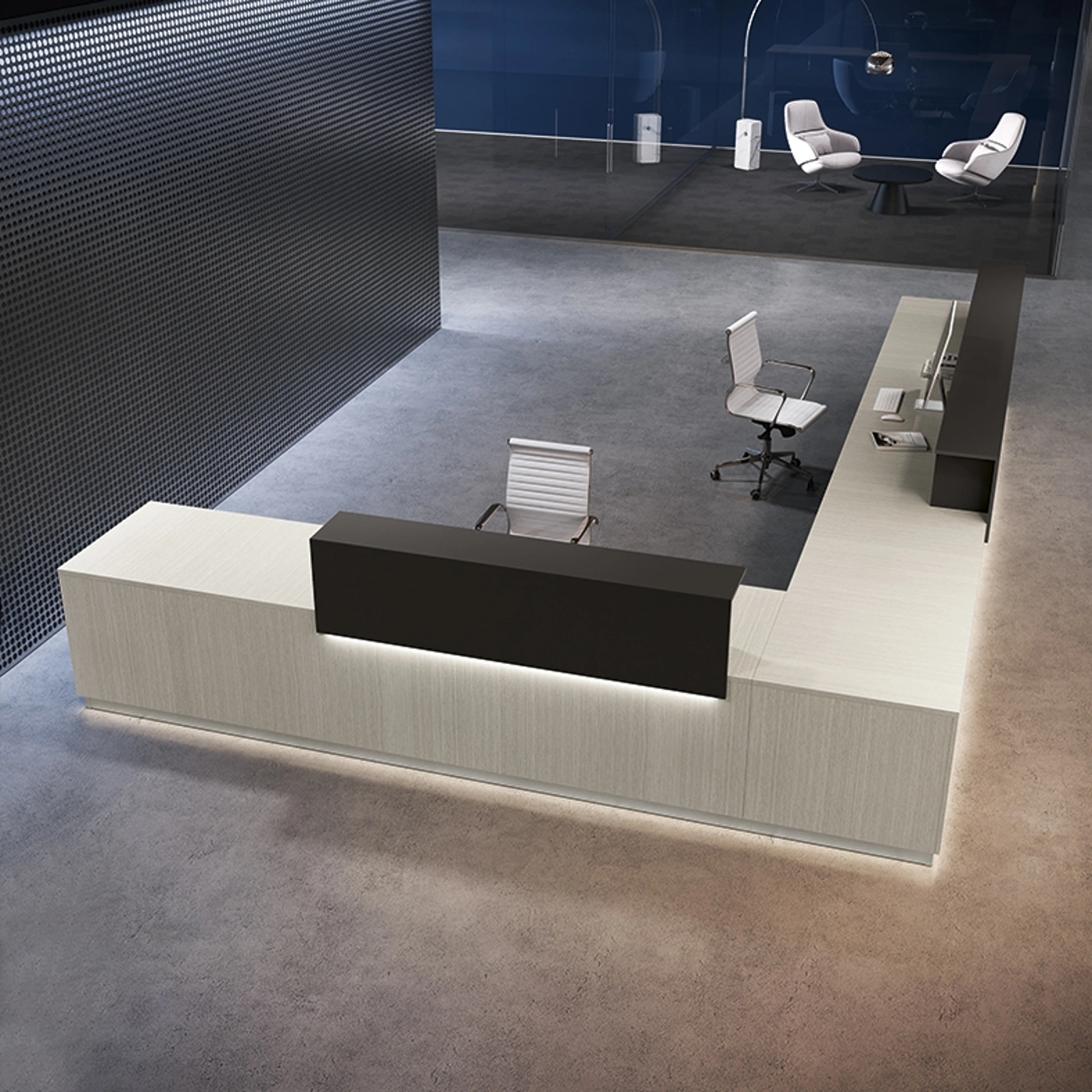 Vuoi ammobiliare l'ambiente lavorativo? Eccoti differenti proposte di banconi reception in melaminico, come il modello Reception Class 05 di Colombini Office.
