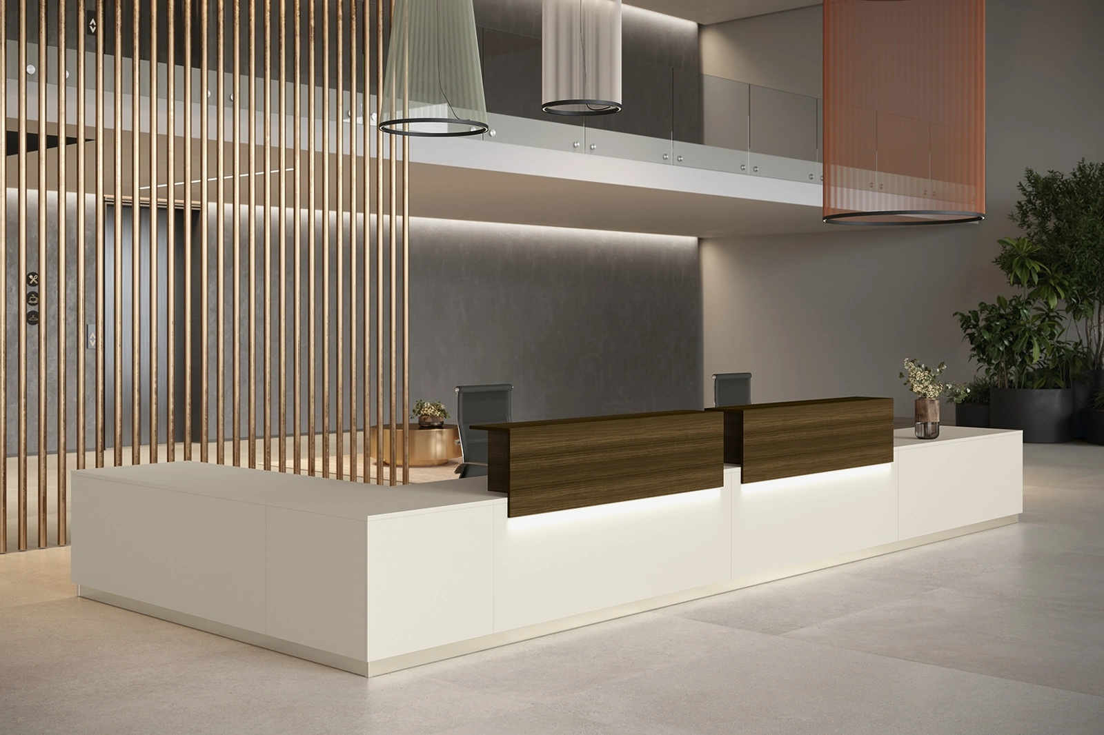 Cerchi Arredo Ufficio dei migliori brand? Scopri le diverse proposte di banconi reception in melaminico, come il modello Reception Class 06 di Colombini Office.