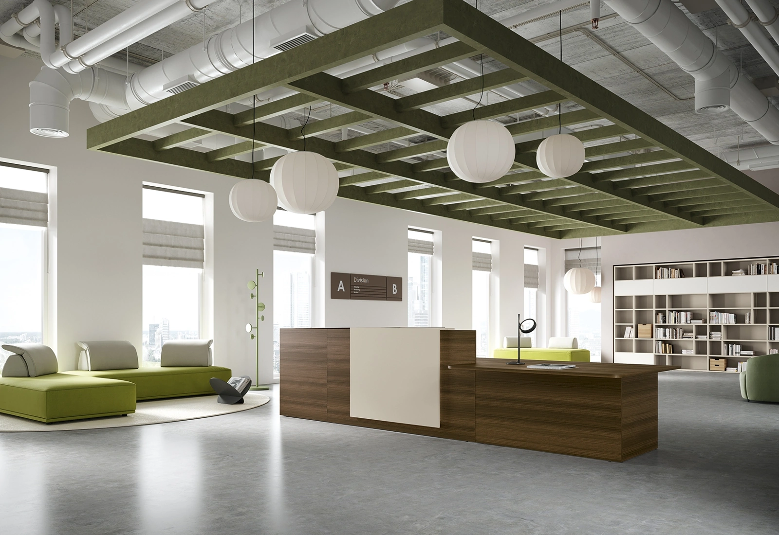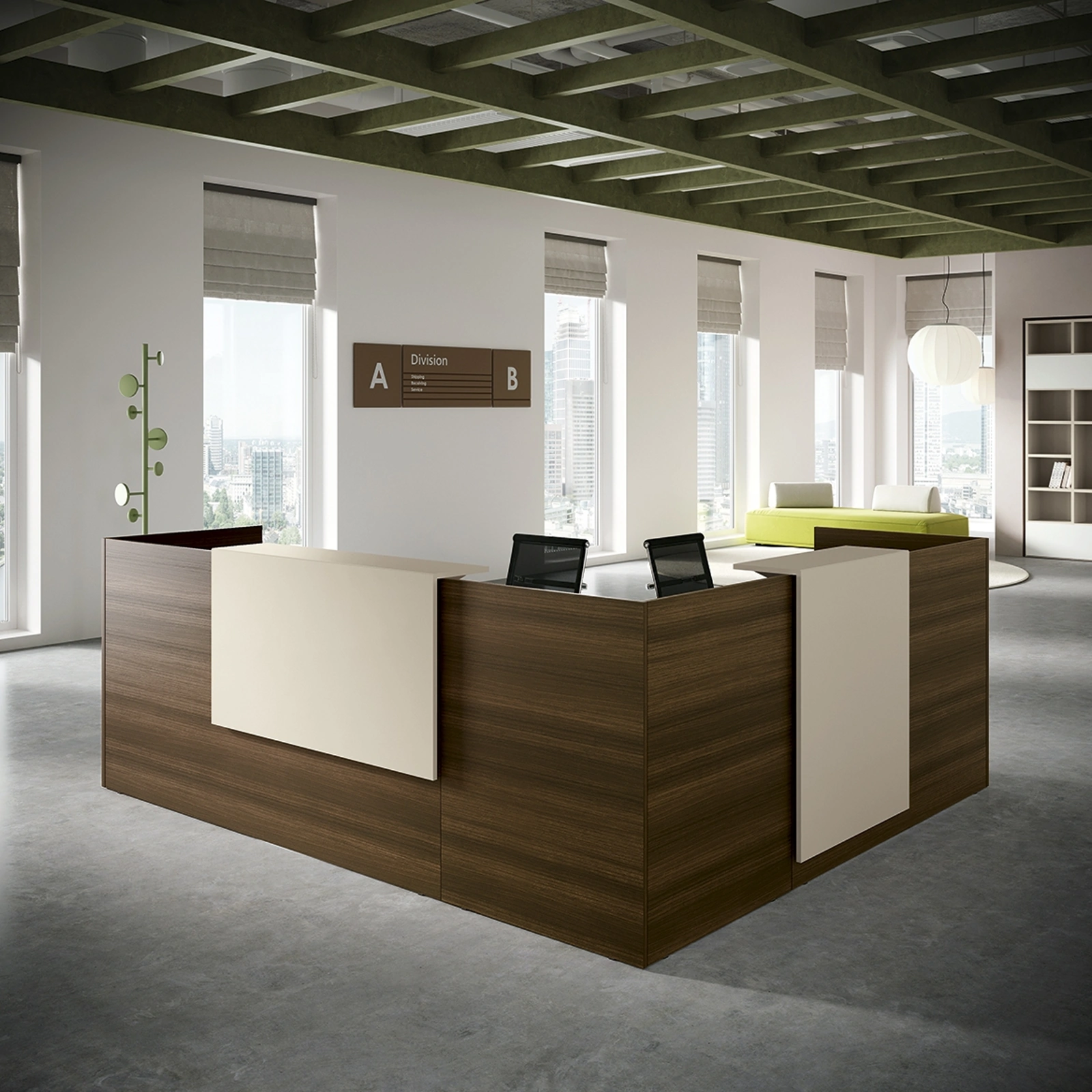 Vuoi arredare l'ambiente lavorativo? Ti presentiamo varie proposte di banconi reception in melaminico, come il modello Reception Color 01 di Colombini Office.